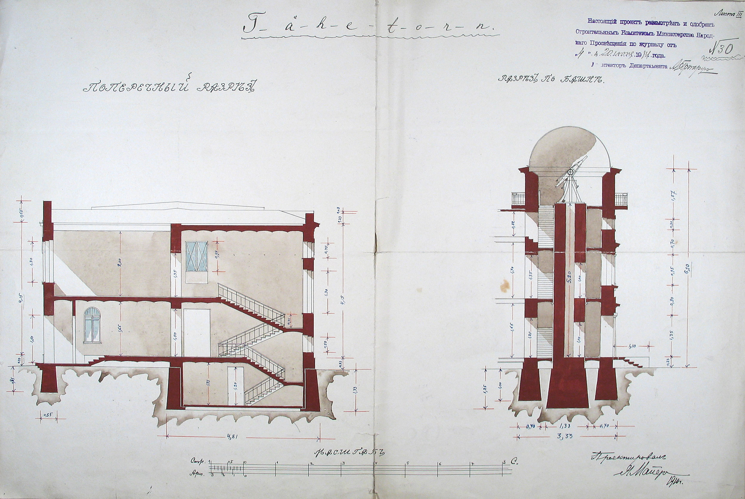 K. Pokrovski (1908—1917) direktoriks oleku ajal ehitatakse portatiivsete instrumentide jaoks observatooriumi hoonest ida poole sammas, mille juurde kuulus rööbastel lükatav puumajake. 1911. aastal sai observatoorium 8-tollise Zeissi refraktori, koos 6-tollise Petzvali objektiiviga astrokaameraga. Uus vaatlusriist asetati observatooriumi hoone torni. Seal varem asunud Fraunhoferi refraktor paigutati ümber idapoolsesse saali.